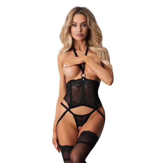 - gorset i otwarte stringi w czarnym kolorze
