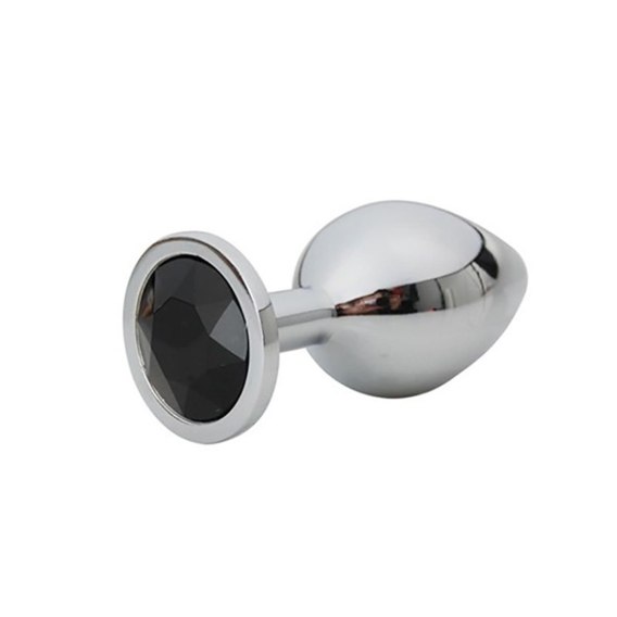Silver Small Butt Plug with Black Diamond