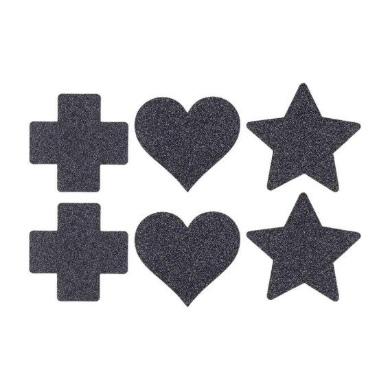Nipple Cover Set - Cross Star Heart - Black